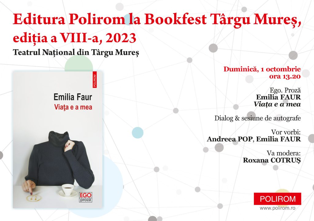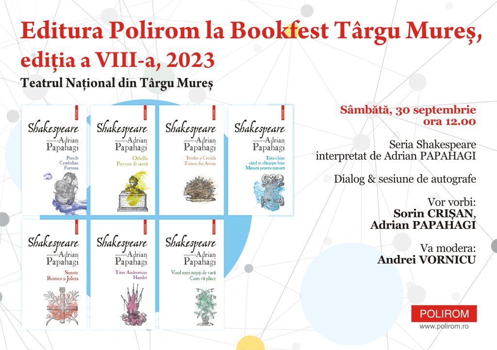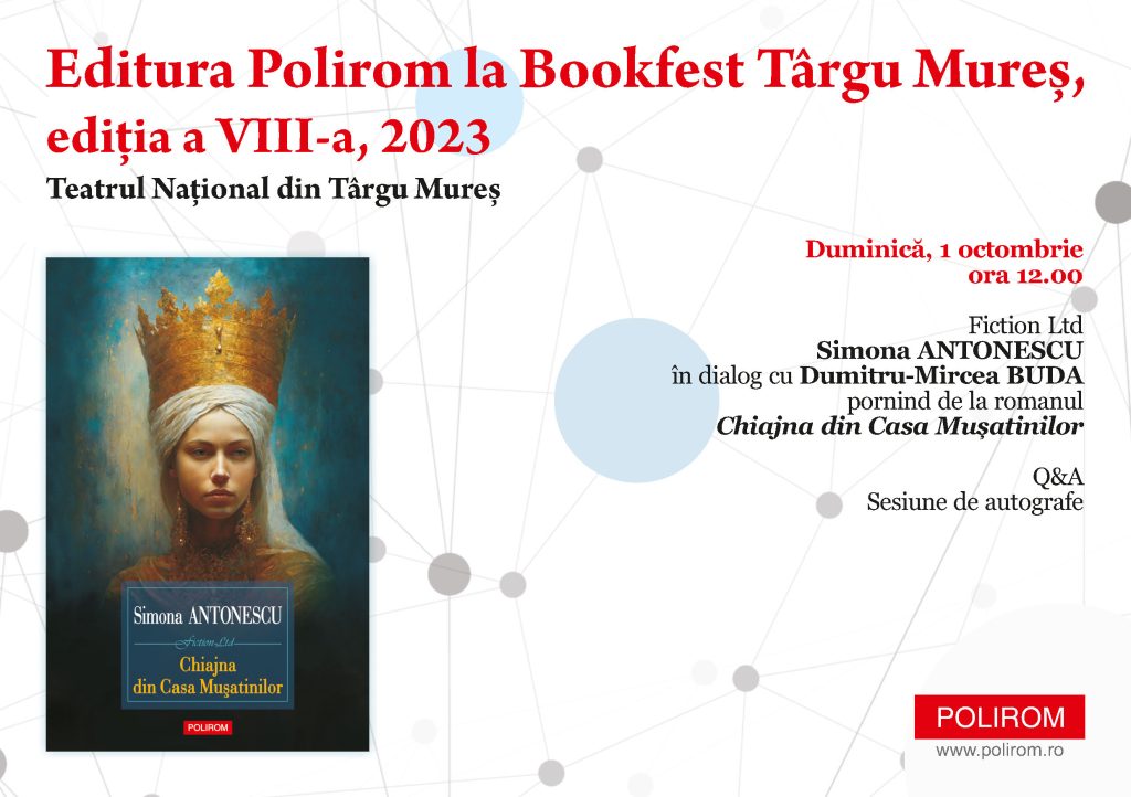 Editura Polirom participă în perioada 28 septembrie-1 octombrie 2023 la cea de-a VIII-a ediție a Salonului de Carte Bookfest Târgu Mureș, care se va desfășura la Teatrul Național din Târgu Mureș.