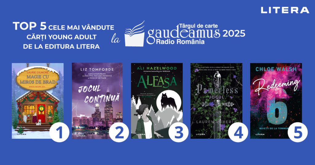Cele mai vândute cărți ale editurii Litera la recent încheiatul Târg de Carte Gaudeamus Radio România 2025 reflectă interesul publicului nostru pentru o gamă variată de produse editoriale: de la ficțiune la non–ficțiune și de la cărți pentru copii la studii ale istoriei recente sau cărți de gastronomie. În prima parte a topului de vânzări se regăsesc cărțile autorilor români, un pariu câștigat al editurii Litera pentru a doua parte a anului 2025. Topul este completat de cele mai căutate cărți din colecția Folio, reflectând interesul constant al cititorilor pentru literatura contemporană premium.