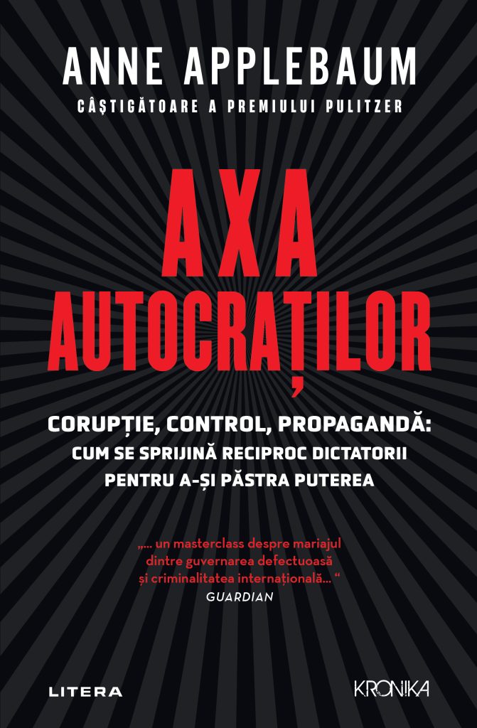 „Cu toții avem clară în minte imaginea unui stat autocratic. Dar în secolul XXI se pare că această imagine a început să se confunde din ce în ce mai puțin cu realitatea. În zilele noastre, autocrațiile nu mai sunt conduse de un singur individ cu porniri dictatoriale, ci de rețele sofisticate compuse din structuri financiare cleptocratice, servicii de securitate și propagandiști profesioniști. Membrii acestor rețele sunt legați nu doar într-o singură țară, ci au conexiuni în mai multe state. Companiile corupte, controlate de stat într-o dictatură, fac afaceri cu companiile corupte, conduse de stat din alt stat. Propagandiștii împărtășesc resurse – fermele de troli care promovează propaganda unui dictator pot fi folosite pentru a promova propaganda altuia – și teme, repetând până la obsesie la ei acasă aceleași mesaje despre slăbiciunile democrației și răul pe care îl reprezintă țările liberale. Spre deosebire de alianțele militare și politice din alte vremuri și locuri, acest grup nu operează ca un bloc, ci mai degrabă ca un conglomerat de companii: o Axă a autocraților. Într-adevăr, sunt cu toții perfect de acord asupra unui singur lucru: ne displac total pe noi, locuitorii lumii democratice, și doresc să ne submineze atât sistemele politice, cât și valorile.“ – Anne Applebaum