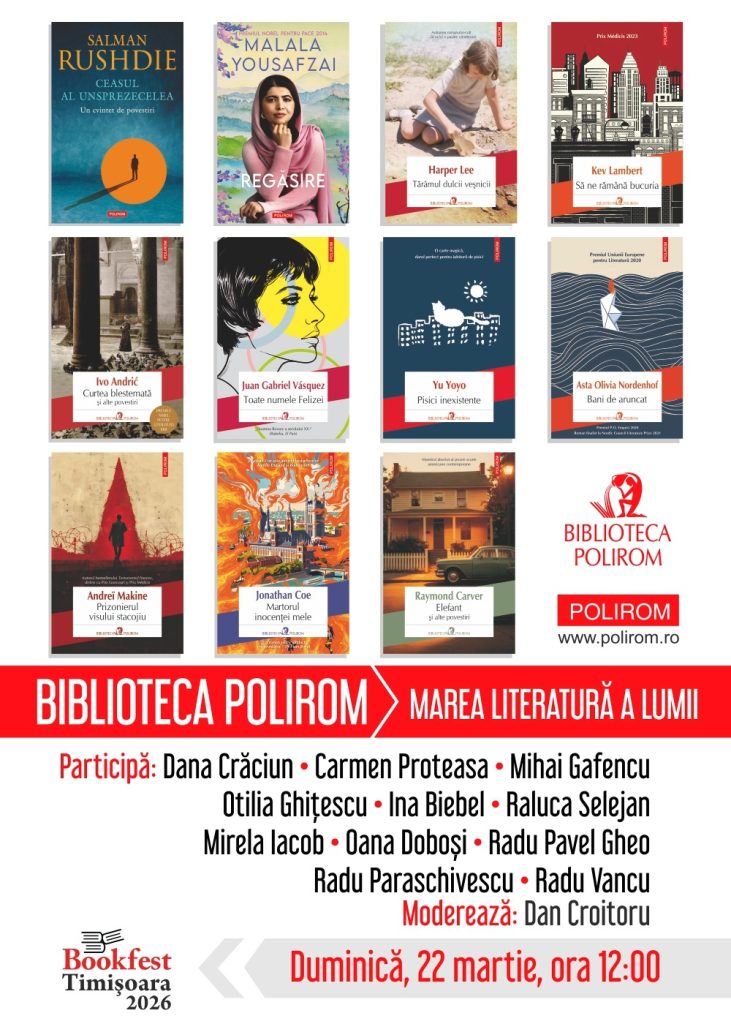 Editura Polirom va participa, în perioada 19-22 martie 2026, la Salonul de Carte Bookfest Timișoara, care se va desfășura la Centrul Regional de Afaceri Timișoara (CRAFT).
