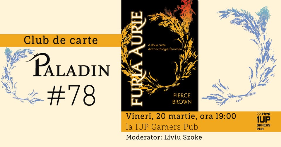 Pe 20 martie ne întâlnim să vorbim despre romanul „Furia aurie” de Pierce Brown, (traducere din limba engleză de Iulia Pomagă), apărut la Editura Paladin în 2016.