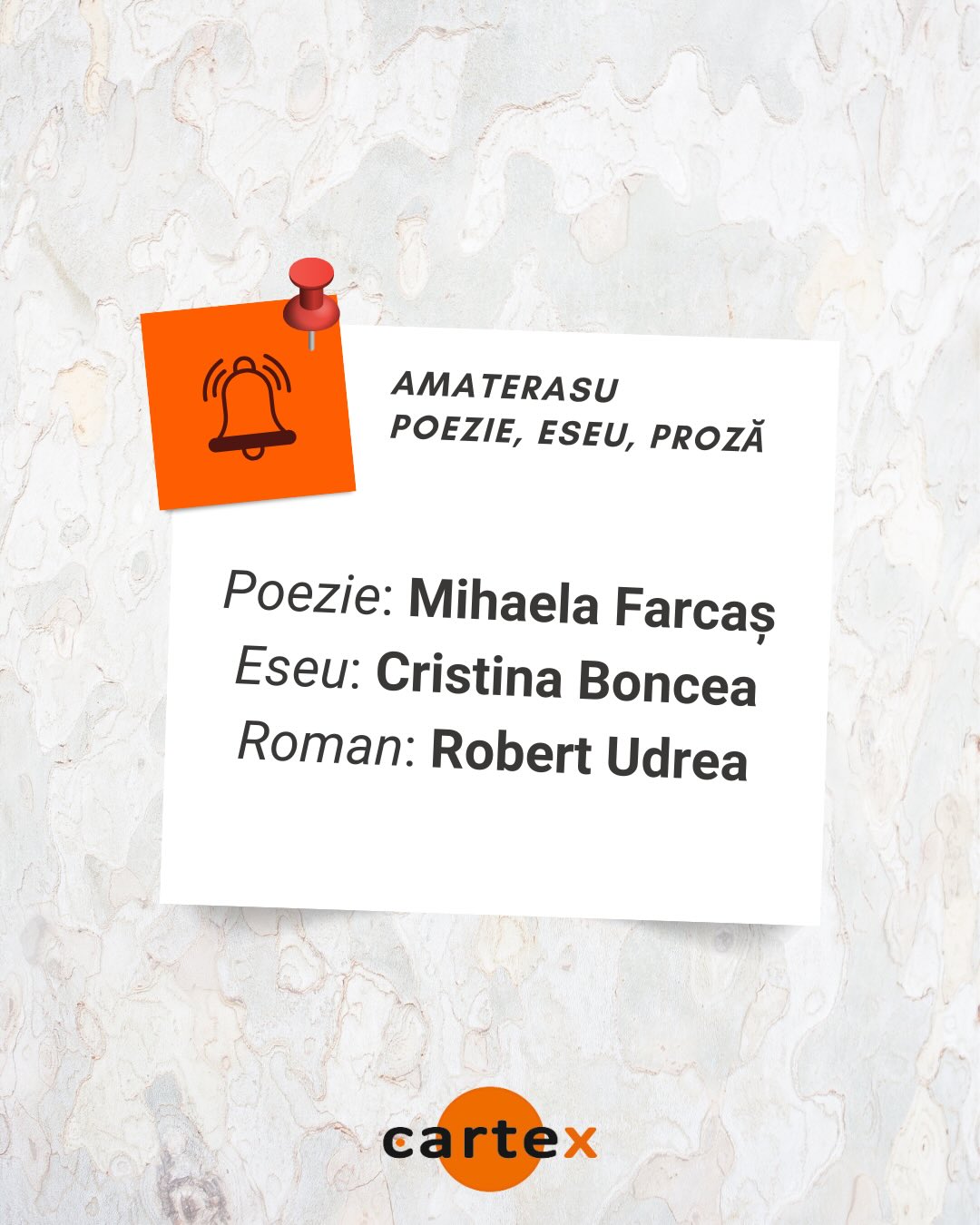 Am primit mai multe lucrări bune – așadar selecția finală a fost una destul de dificilă. Am dori să le transmitem încurajări celor care nu se vor regăsi pe lista aceasta – multe din cărțile primite, în special la categoria poezie, merită atenție și suntem convinși că vor vedea curând lumina tiparului. Totuși, deși a fost greu, a trebuit să ne îndreptăm atenția spre câte un titlu din fiecare categorie. Am luat în considerare fluiditatea și coerența, mesajul și tehnica fiecărui text, precum și posibila integrare în colecția Amaterasu, coordonată de Ramona Boldizsar. Această integrare a ținut mai mult de mesajul și stilul scrierii și nu de tematica aleasă.