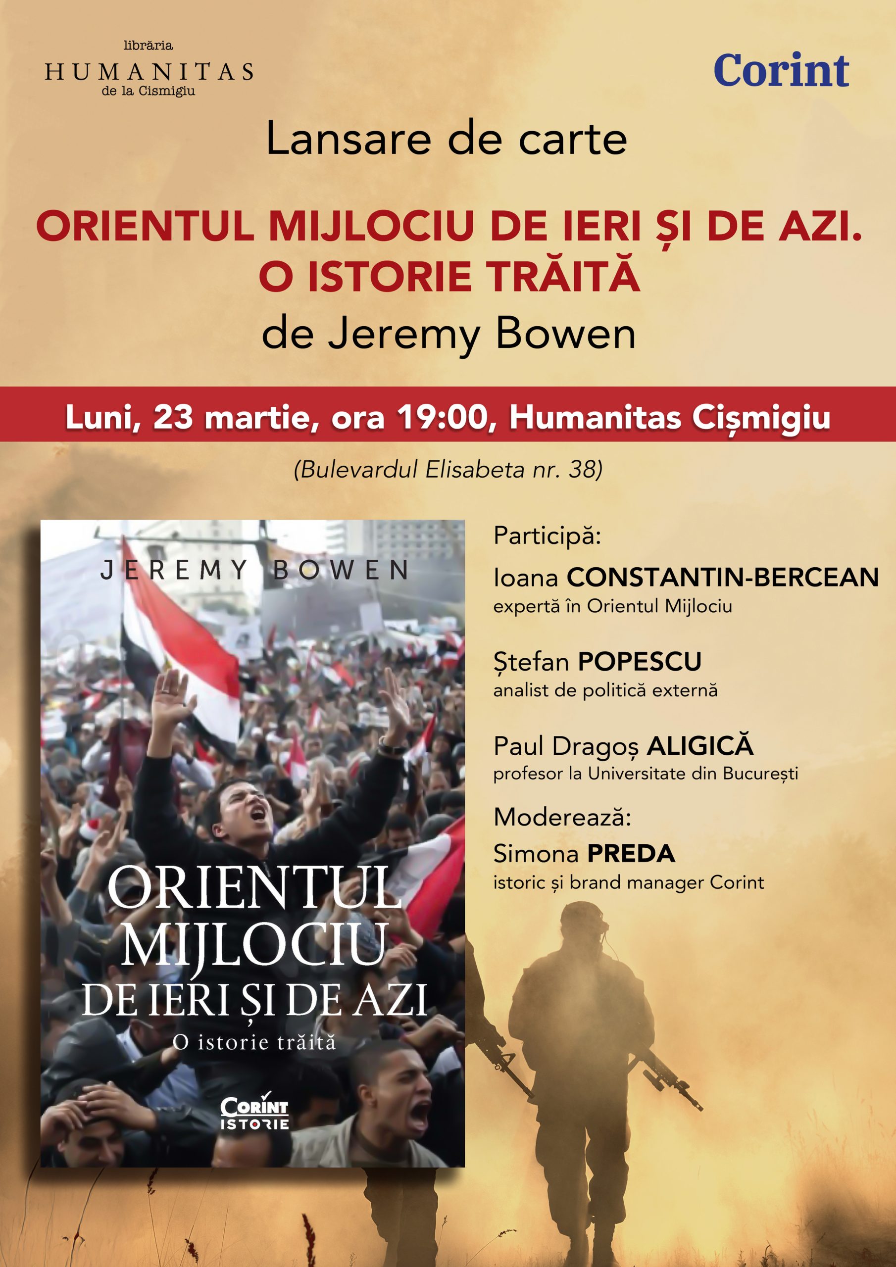 Lansarea va avea loc luni, 23 martie, de la ora 19:00, la Librăria Humanitas Cișmigiu (Bd. Elisabeta, nr. 38).